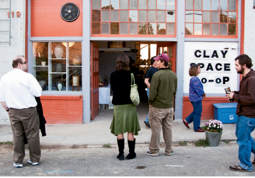 After the four-and-a-half-hour drive from Charleston, we’d start our visit in the River Arts District in view of the Wedge (which also houses wood-fired pottery studios, of course). Hungry from the drive, we stopped first in Clingman Café, a lively place with local art on the walls, a busy kitchen, and a refrigerator case of fresh food. I ordered a tuna salad plate and soup and happened to be served by the owner, Tripp Howell, who moved to Asheville from Los Angeles. (And before that, in the 1980s, he said he worked at Charleston’s own Henry’s.)