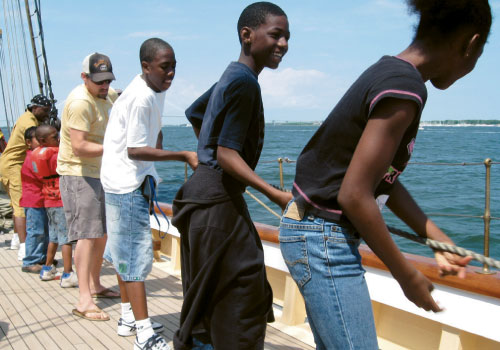 By then, Arrow had concluded that life on the water was his calling, but he needed deeper knowledge in order to make good judgments while at sea. Plus, it was time to truly learn the art of sailing. He joined the crew of the H.M.S. Rose, a majestic 18th-century Royal Navy frigate replica. Not only was the gargantuan square-rigged ship a rigorous and exciting sail (the Rose later appeared in the Academy Award-winning film Master and Commander), it exposed Arrow to onboard education programs. “Participation in a sail training program is literally a life-changing experience,” says Arrow, who observed an evident impact on youth. “It puts kids in a place where they are compelled to think about more than just their own perspective; they learn to be part of something bigger.”