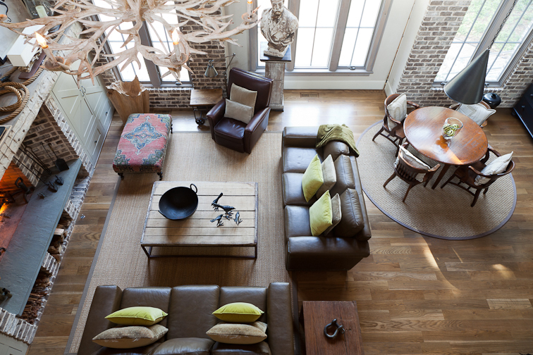 When Becky Hollingsworth and longtime partner Deedie Cooper began dreaming up designs for a home inspired by Charleston’s rich history, they didn’t go the predictable row-house route. Instead, the creative retirees took their architectural cues from the 19th-century cotton warehouses that dot the peninsula. Boasting high ceilings, exposed brick walls, and industrial ironwork, these historical beauties sprung up to support the city’s then-booming cotton trade; many have since been retrofitted into rustic-cool hotels, condos, and restaurants. “We loved the idea of incorporating those industrial elements to make it feel like a working man’s house,” Cooper explains. Add to that décor that draws from Hollingsworth’s collection of vintage maritime memorabilia (sailor’s uniforms, centuries-old life preservers, Navy flags, you name it), and a clear vision of their dream coastal abode began to take shape.