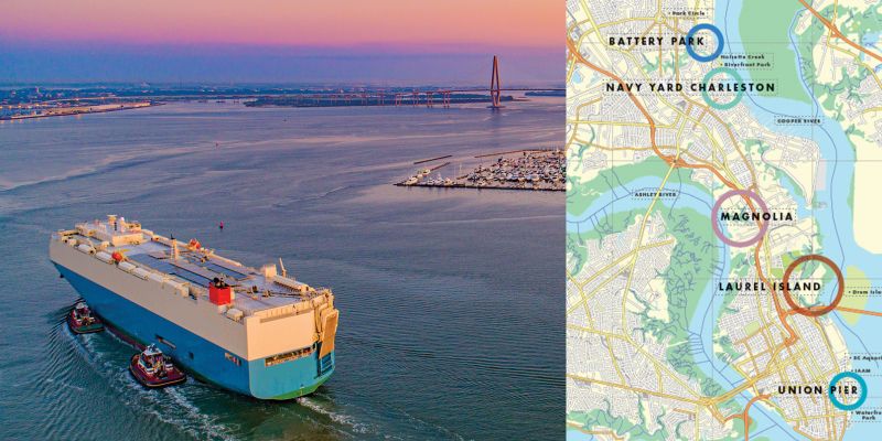 It works, and we continue talking about the best scenic hikes in the area. (I’ve been asking everyone we meet.) A popular suggestion is Sunset Rock, and that’s where we go at the day’s end. Parking is at the Highlands Nature Center and Botanical Garden, which hosts a weekly series of conservation lectures in the summertime; we just missed the one on Charles Darwin’s theories. On foot, we follow the unpaved road for more than a half-mile climb to Ravenel Park and the Sunset Rock overlook. Other sunset watchers have blankets laid out and picnics underway at the broad, rugged rock face with easy views of the twinkling lights of Highlands’ downtown streets.