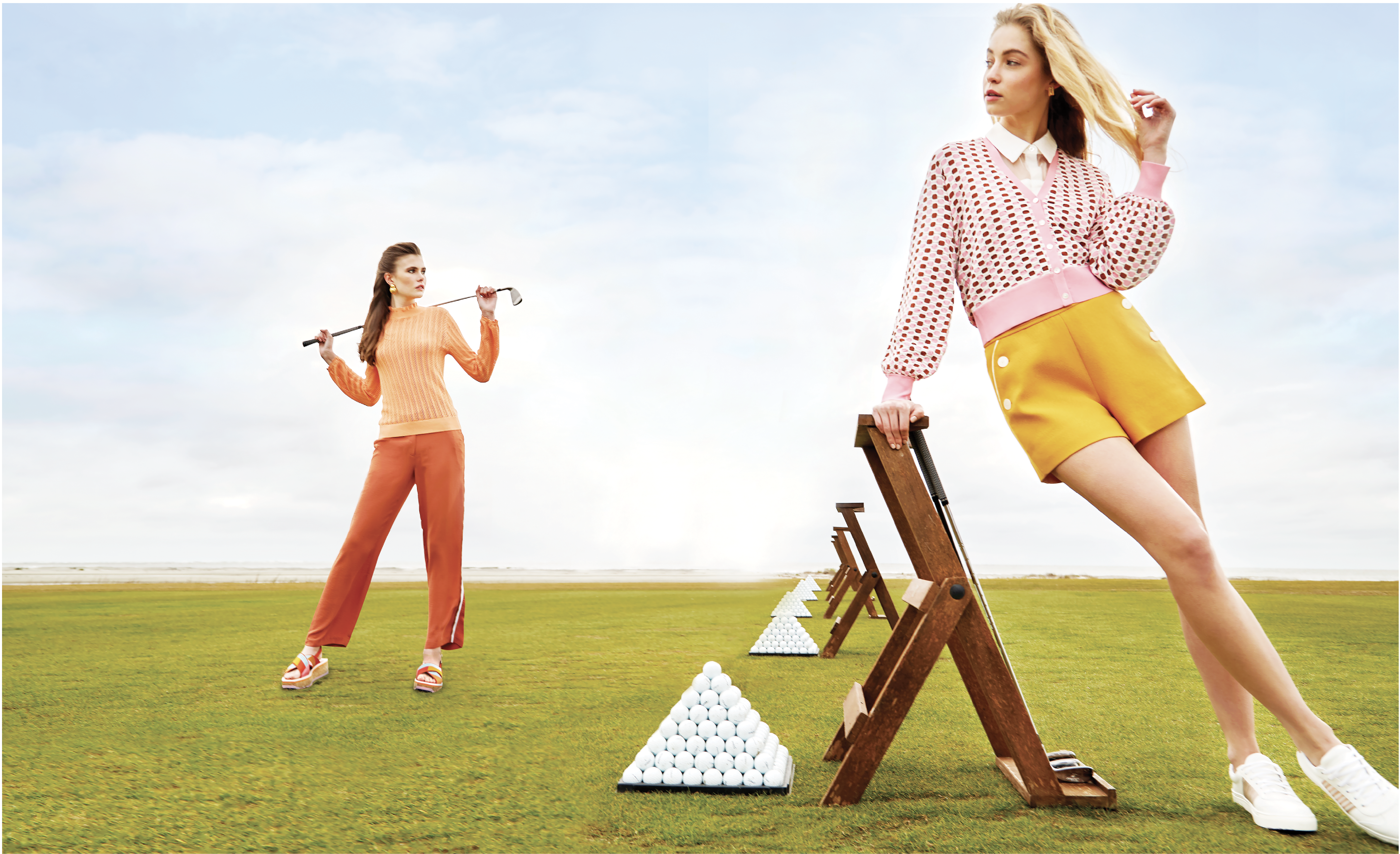 Have a ball on and off the course and courts with a playful mix of sports-, resort-, and ready-to-wear looks in saturated hues, graphic prints, and crisp whites—plus a hint of ’70s vibe