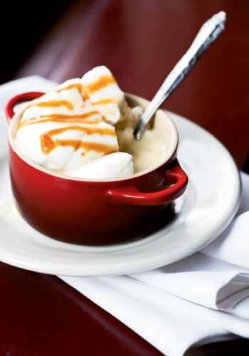 While Perig says he’s not a “big sweets person,” he admits he can’t resist an Îles Flottantes (Floating Island). “French pâtissiers make an infinite number of incredible desserts with just three ingredients: eggs, sugar, and milk,” explains the chef. In bistros, waiters will often serve this classic chilled dish of crème anglaise and soft meringue directly from a dessert cart, spooning individual servings from a family-style bowl. With its cloud-like topping, the creamy and light vanilla sauce is ideal for diners both young and young at heart.