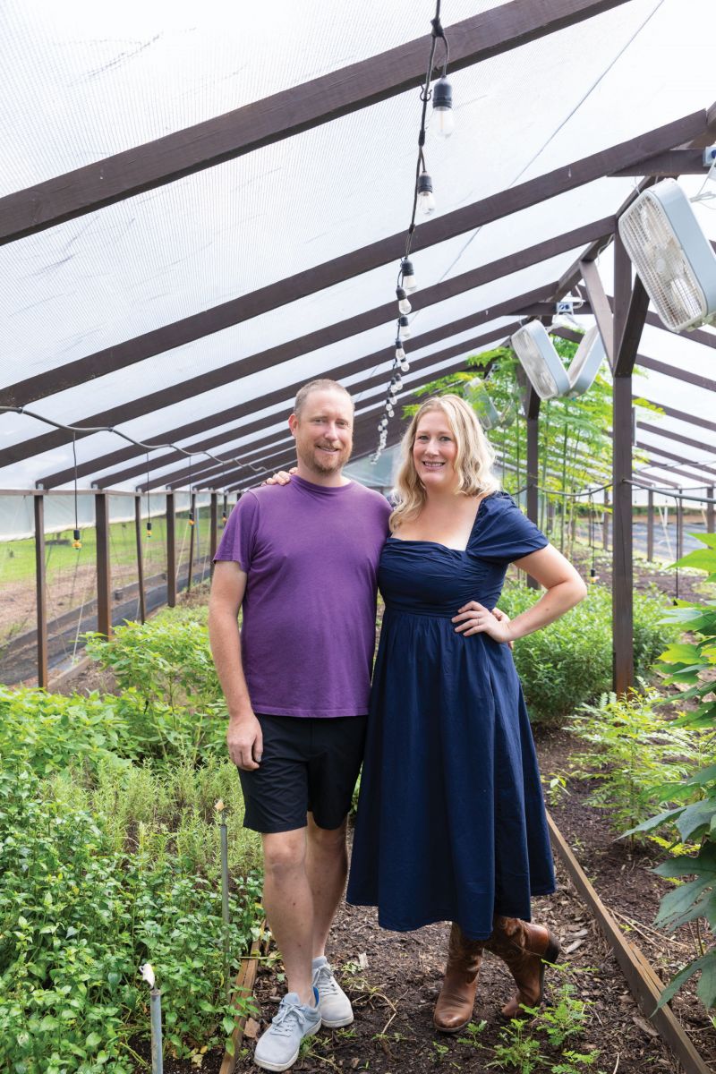 Dan and Amy Urbanik in the greenhouse of their five-acre Urb Farm on John’s Island.
