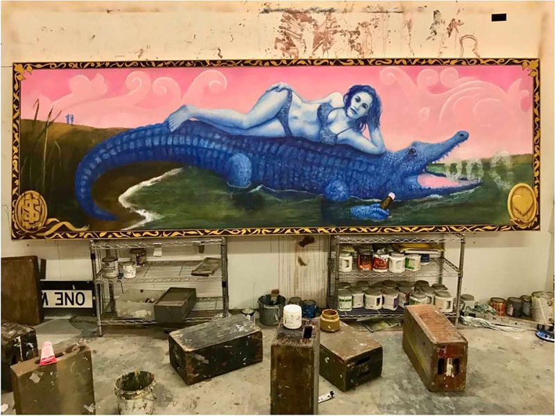 Miss Folly Beach Astride 2 Gators (8 x 9 feet, 2014)