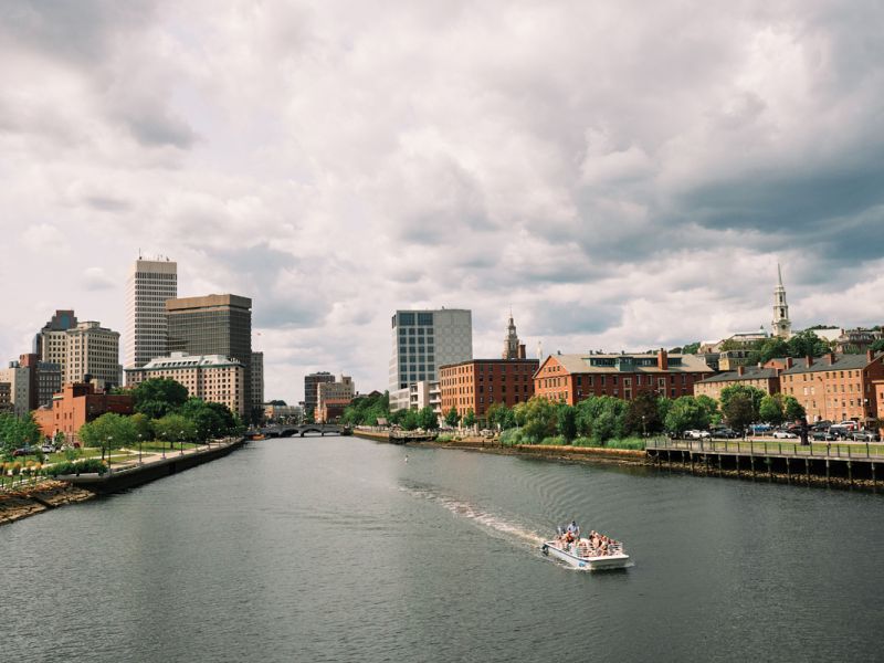 A gondola glides through downtown Providence, a seaport threaded with rivers.