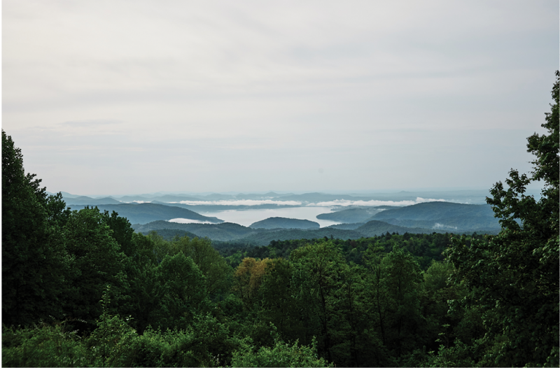 Mountains for Miles: A pre-dinner gathering on a patio at the 50-acre Skyline Lodge. Founded in 1875, the North Carolina town was promoted from its start for the cooler climate, healthy air, and excellent potential for orchards and gardens.