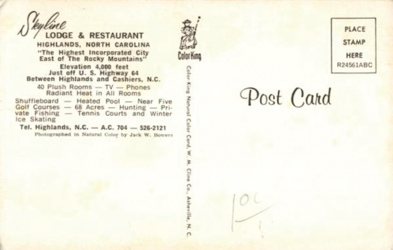 Vintage Vacay: In a brochure from the 1960s era of Skyline Lodge, Highlands is described as “magnificently astride the saddle of a 4,300-foot mountain overlooking the waterfalls.”