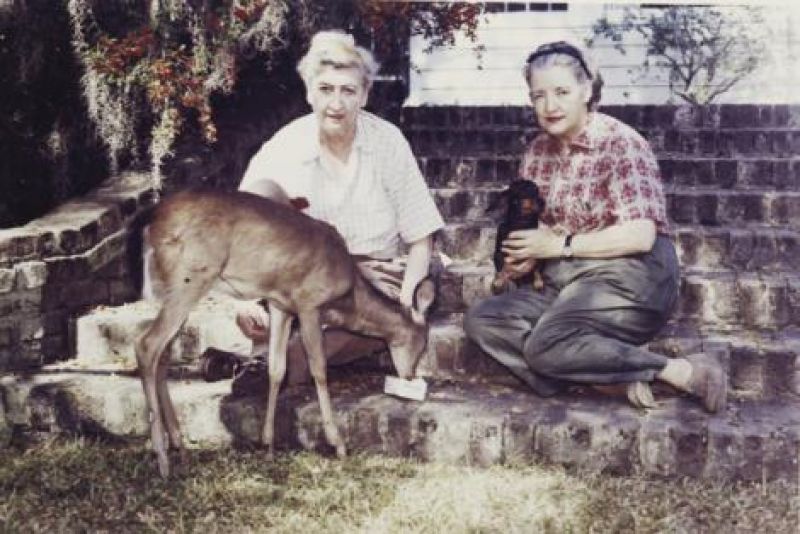 Belle with her pet Deary-Deer in 1963; the fawn had full run of the house and property at Bellefield Plantation, Belle’s home on Hobcaw Barony.