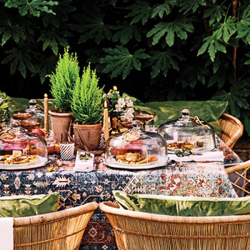 Robinson hung the family’s outdoor lanterns over the adults’ dining table, candlelit and shimmering with mercury glass