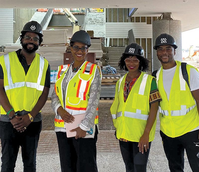 Hard Hats, Clear Vision: With construction almost complete, Matthews and her team are finalizing exhibits and programming. Here, she leads a tour for South Carolina Representative JA Moore (left); IAAM board member Lenard Larry McKelvey, a Moncks Corner native and TV and radio personality known as “Charlamagne tha God;” and his wife, Jessica Gadsden.